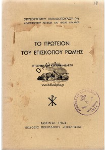 Πολύς αύθις εν τοις καθ' ημάς χρόνοις γίνεται λόγος περί του πρωτείου του Επισκόπου Ρώμης, ζητούντος όπως αναγνωρισθή ως ορατή κεφαλή της Εκκλησίας, Τοποτηρητής του Χριστού, πηγή της Ιερωσύνης, μόνος από καθέδρας δογματιστής και διδάσκαλος αλάθητος της χριστιανικής πίστεως. Παρίσταται δε το πρωτείον ως θείω δικαίω και δυνάμει των προς τον Απ. Πέτρον επαγγελιών του Σωτήρος υφιστάμενον υπέρτατον αξίωμα εν τη Εκκλησία, ως ηγεμονία (principatus) του Επισκόπου Ρώμης. Επαναλαμβάνονται οι γνωστοί ισχυρισμοί, καθ' ούς, δήθεν, ούτος δεν είχεν απλώς πρεσβεία τιμής (honoris), αλλά πρωτείον εξουσίας (potestatis) και καθ' ους από τοων πρώτων ημερών του Χριστιανισμού ανεγνωρίζετο δήθεν η απεριόριστος και απόλυτος δικαιοδοσία του πάπα Ρώμης επί της όλης Εκκλησίας. Προστίθεται εις τους ανωτέρους και έτερος ασύστατος ισχυρισμός, καθ' όν ο Φώτιος και Μιχαήλ Κηρουλάριος, οι Πατριάρχαι ΚΠόλεως, εκ φιλοδοξίας μη αναγνωρίσαντες την δικαιοδοσίαν ταύτην και το πρωτείον, προυκάλεσαν το σχίσμα των εκκλησιών. Η επισταμένη όμως ιστορική και κριτική έρευνα του ζητήματος περιτράνως αποδεικνύει ότι η αρχαία Εκκλησία δεν επίστευσε ποτέ ότι ο Απ. Πέτρος υπήρξεν ορατή κεφαλή της Εκκλησίας και ότι ο Επίσκοπος Ρώμης, ως διάδοχος αυτού, εκληρονόμησε την εφ' απάσης της Εκκλησίας μοναρχικήν ηγεμονίαν[...]