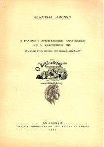 Η ΕΛΛΗΝΙΚΗ ΑΡΧΙΤΕΚΤΟΝΙΚΗ ΑΝΑΓΕΝΝΗΣΙΣ ΚΑΙ Η ΚΑΚΟΠΟΙΗΣΙΣ ΤΗΣ (ΣΥΜΒΟΛΗ ΣΤΗΝ ΙΣΤΟΡΙΑ ΤΟΥ ΝΕΟΚΛΑΣΣΙΚΙΣΜΟΥ)